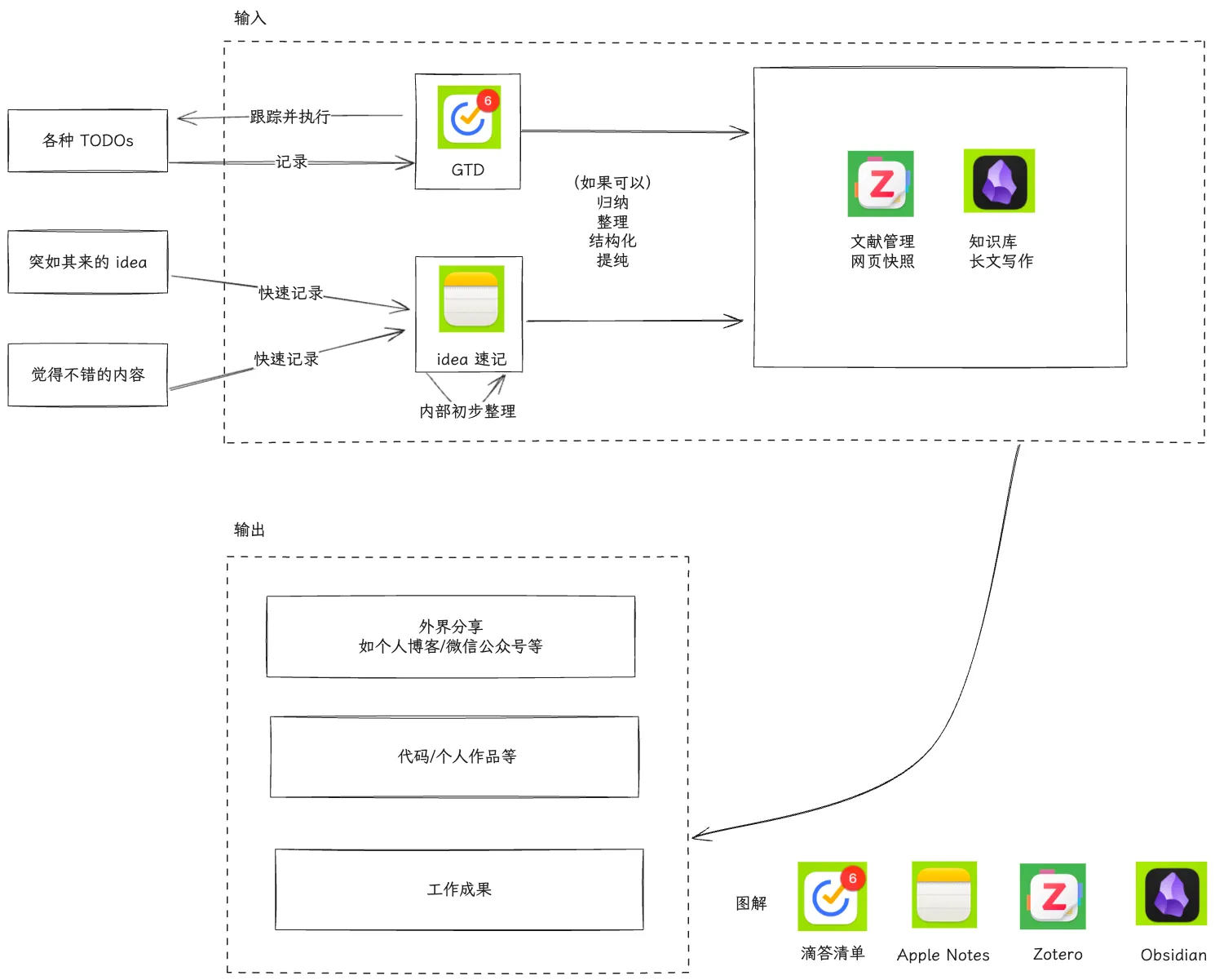 目前,我主要用的 app 有:滴答清单, Apple Notes, Zotero, Obsidian.