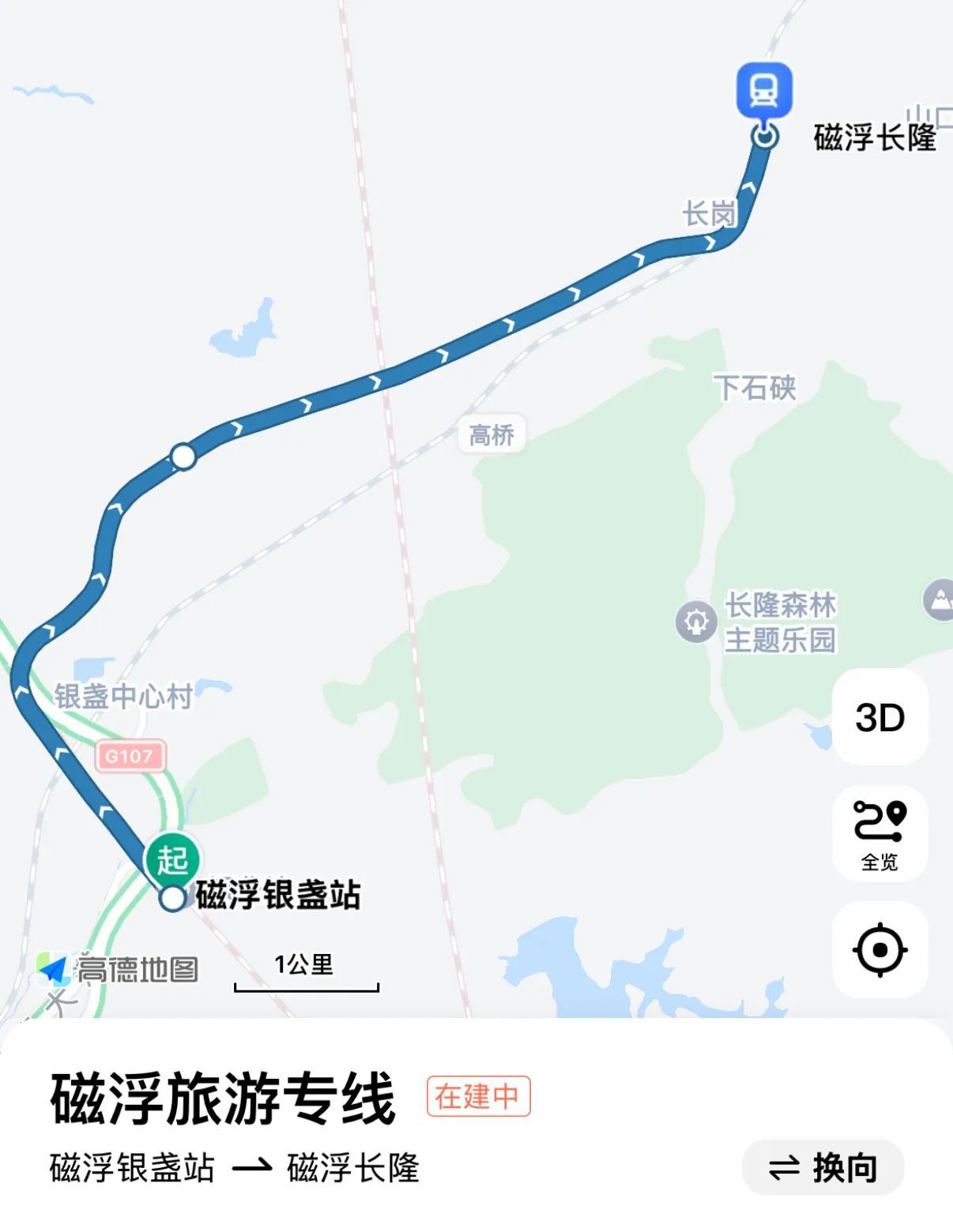 这条线是将游客从银盏城轨站载到清远长隆的,主要是去体验一下广东第一条中低速磁悬浮。不过 2025 年都要来了,清远长隆还没开业…