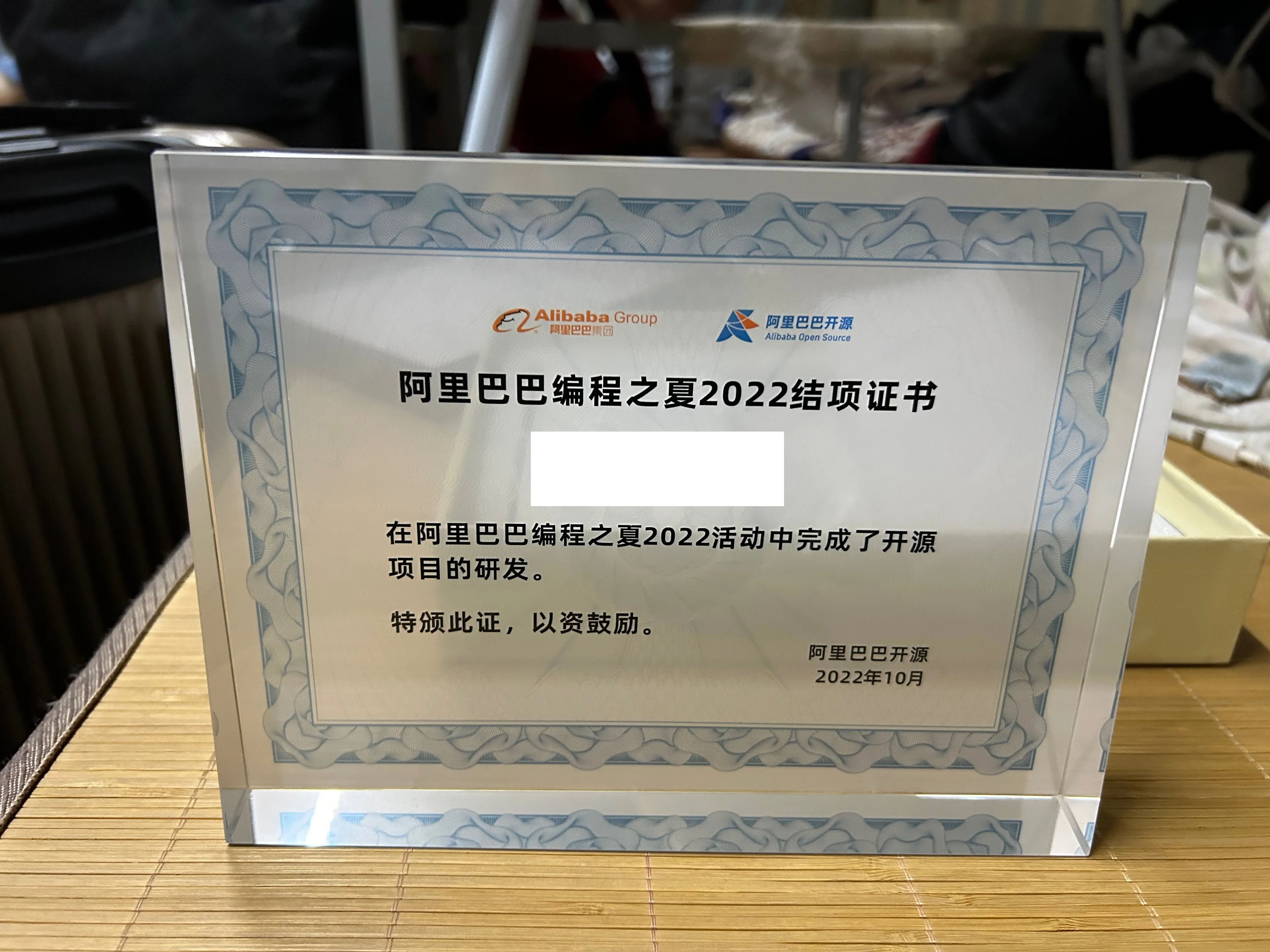 此外,还参加了阿里巴巴的开源之夏并完成了课题(这个活动后来也停办了…)。