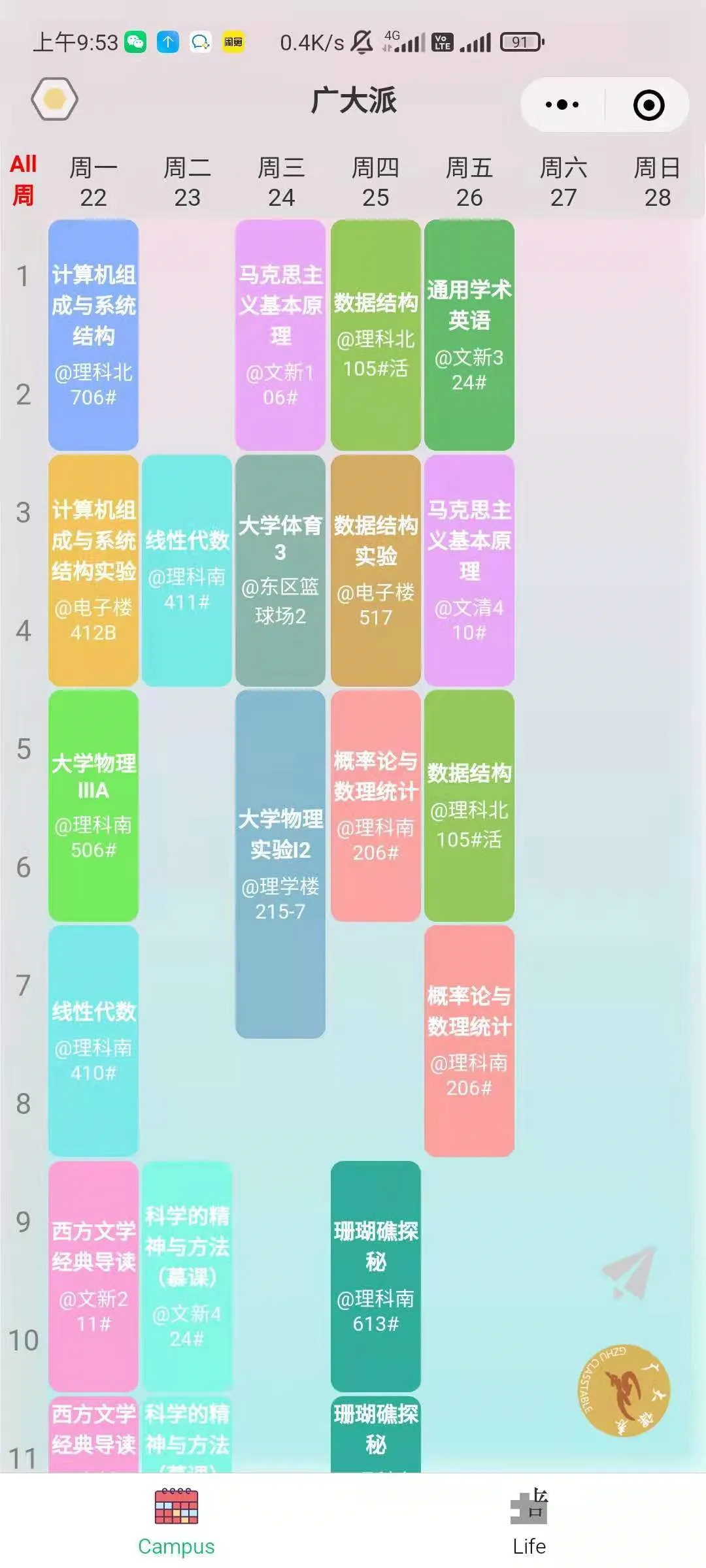 大一闲时会坐 B25 公交 or 地铁 4 号线出岛玩耍。有时候也会一整天宅在宿舍,中午晚上都点外卖,当年还处于疫情期间,点了外卖也要走一段路去生活区栏杆处取外卖。说起外卖,很幸运地,大学四年都没被偷过外卖(可能是点外卖的次数太少了)